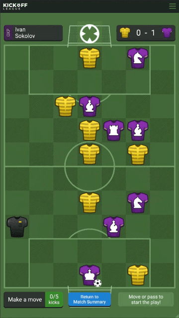 Kickoff League is a daily soccer chess puzzle game you can play free in your browser! Figure out how the goals in a soccer game were scored, using players that move and pass like chess pieces.